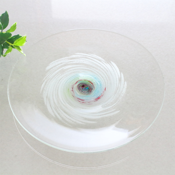 沖縄土産にピッタリな琉球ガラスで作られた大皿 沖縄 お土産 大皿 お皿 おしゃれ ガラス 食卓 和食盛り皿 琉球ガラス 渦潮モール大皿